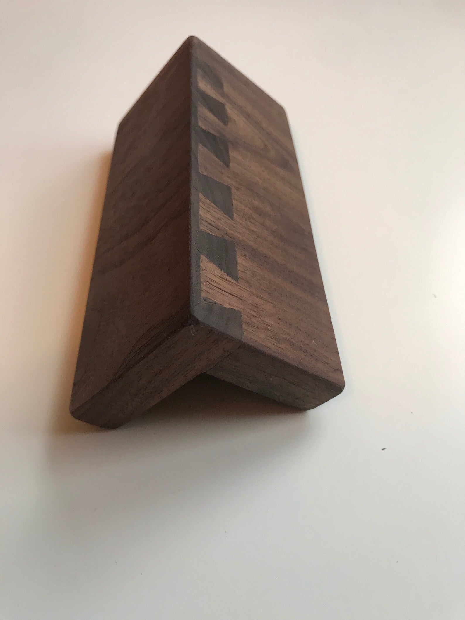 Ablage, Halterung für Handy, Smartphone und Tablet - aus nachhaltigem Nussbaum, handgemacht mit halbverdeckter Schwalbenschwanzverbindung