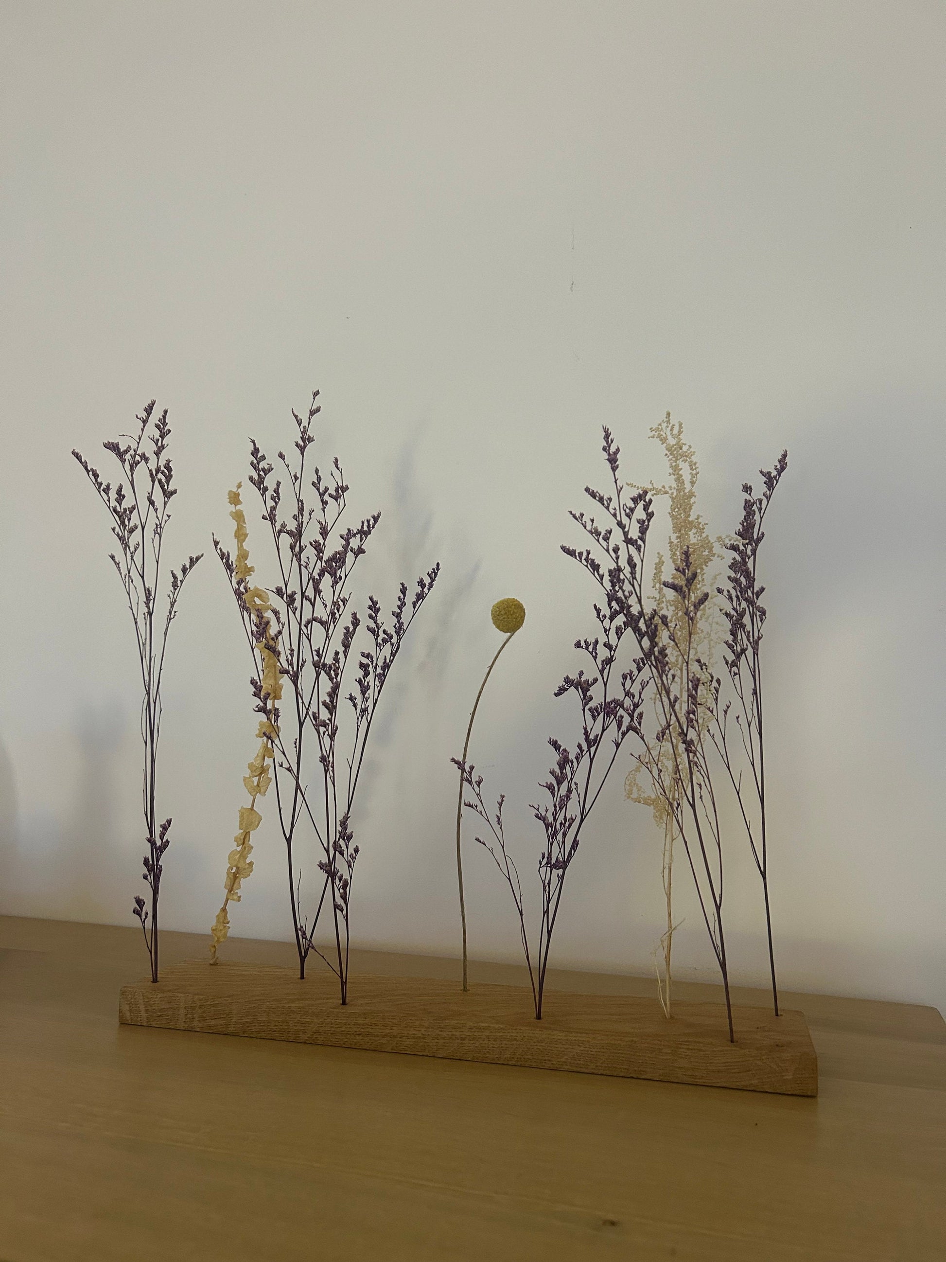 Blumenwiese aus Holz mit echten Trockenblumen – Dekoration aus Eiche – Trockenblumenhalter | Handmade I Geschenkidee