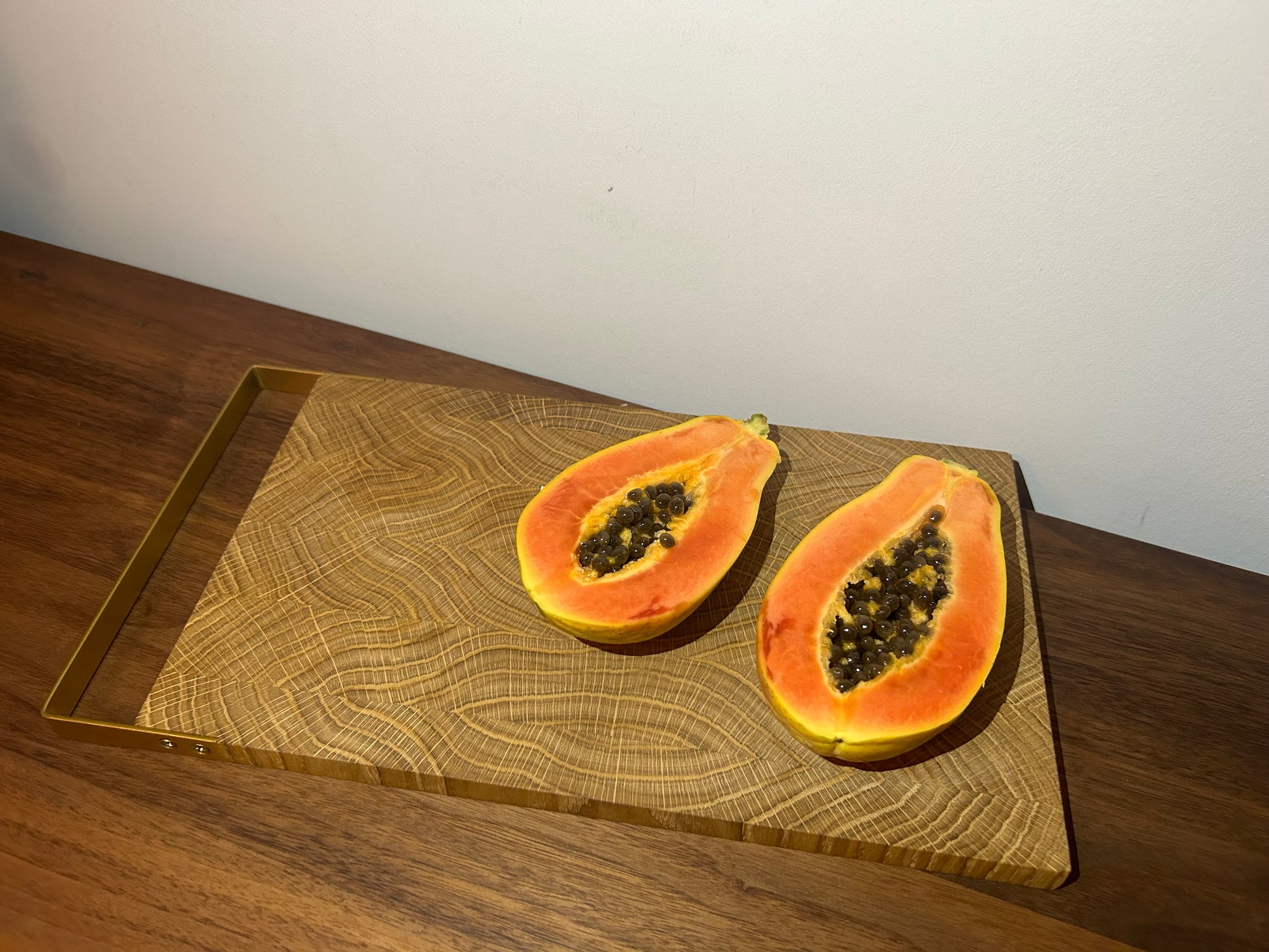 Eiche ist durch ihren hohen Gerbsäureanteil antibakteriell – eine natürliche Hygienequelle für Ihr nachhaltiges Schneidebrett. Dank des eleganten Messing-Griffs können Sie das Holzbrett auch einfach in der Küche aufhängen, wo es gut trocknet und immer griffbereit ist.