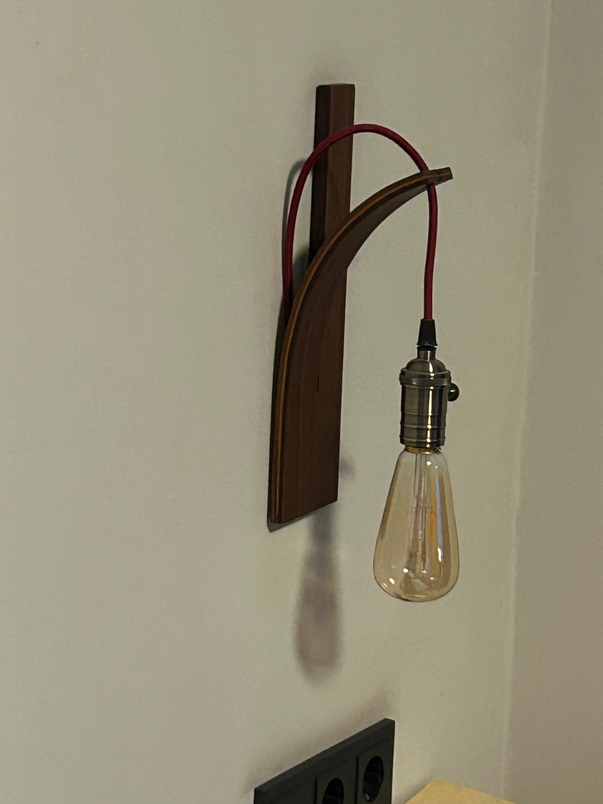 Handgefertigte Glühbirnenhalterung aus Nussbaum – Eleganz in geschwungener Form und zeitloser Ästhetik
