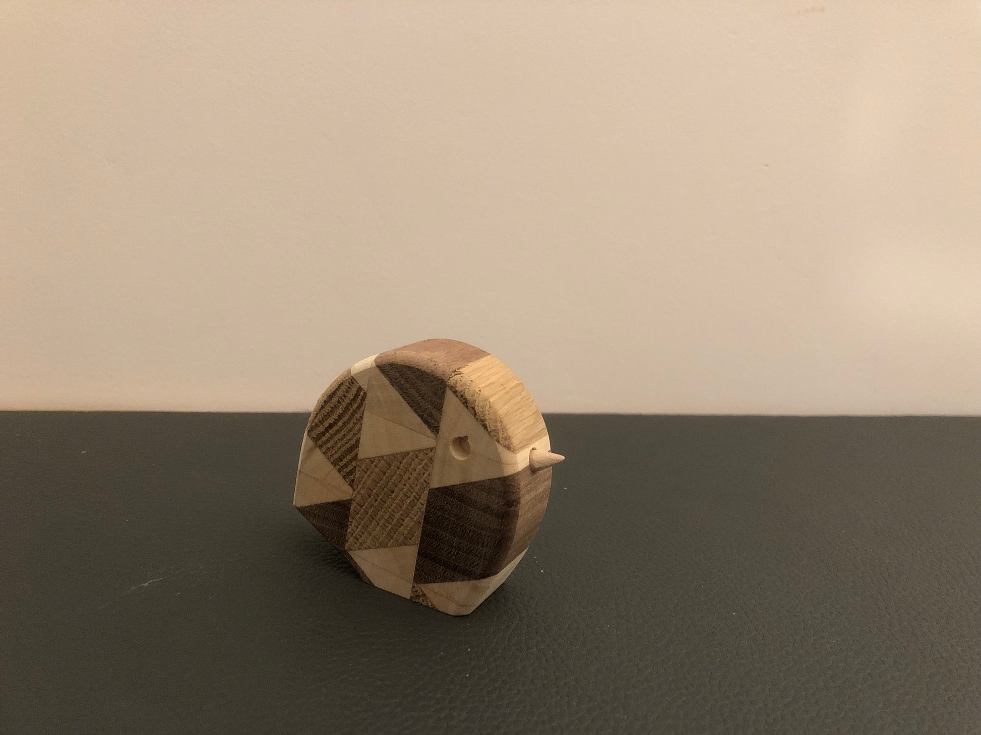 ✔ Der Vogel im frechen Look besteht aus massivem Eichen-, Ahorn- und Nussbaumholz mit einem Schnabel aus Buche.
