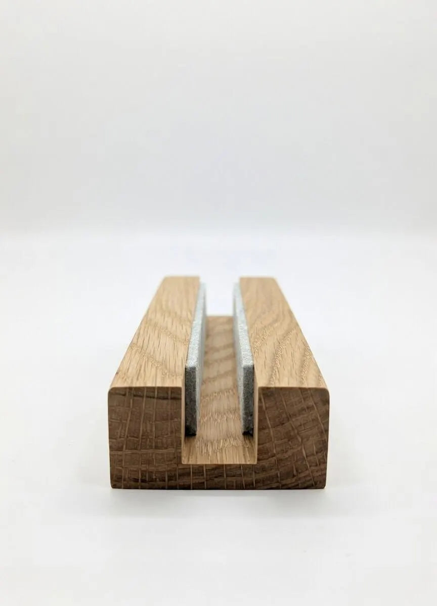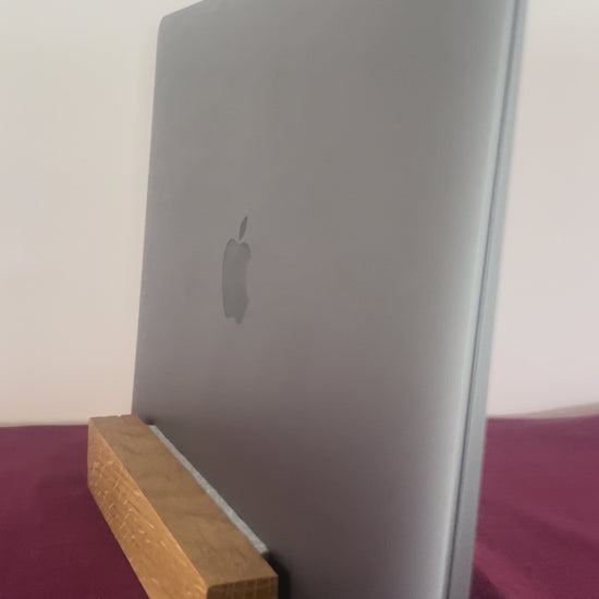Der Laptophalter wird aus nachhaltiger, massiver Eiche handwerklich gefertigt.