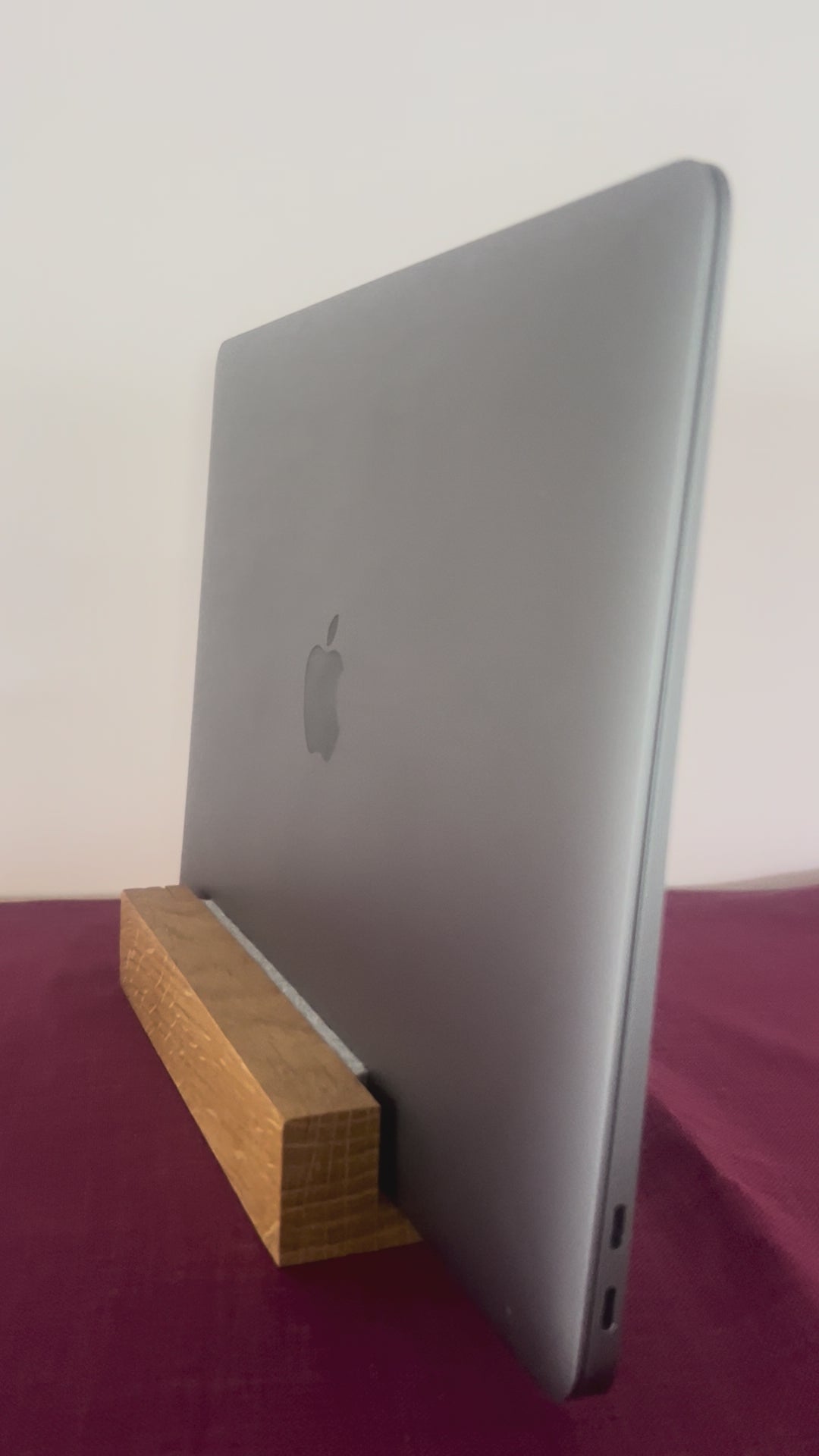 Laptopständer aus massiver Eiche – handgemachter Holzhalter für MacBook und Notebook – minimalistisches Design, geölt & gewachst
