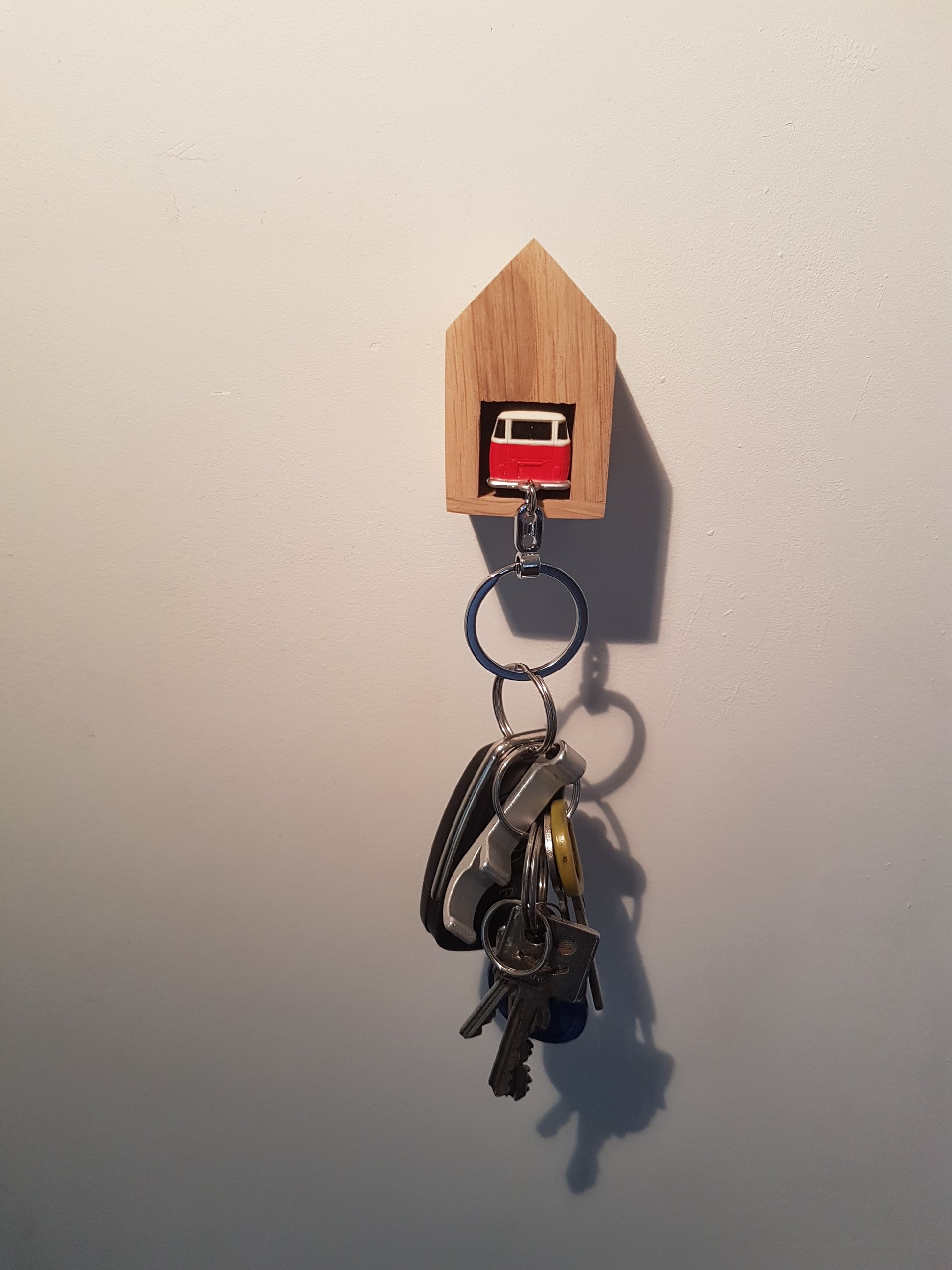 Ob Einzug, Hochzeit, Geburtstag, Muttertag, Vatertag, Valentinstag oder einfach als dekoratives Wohnaccessoire – diese Schlüsselgarage aus Holz mit T1 Schlüsselanhänger ist ein praktisches und stilvolles Geschenk.