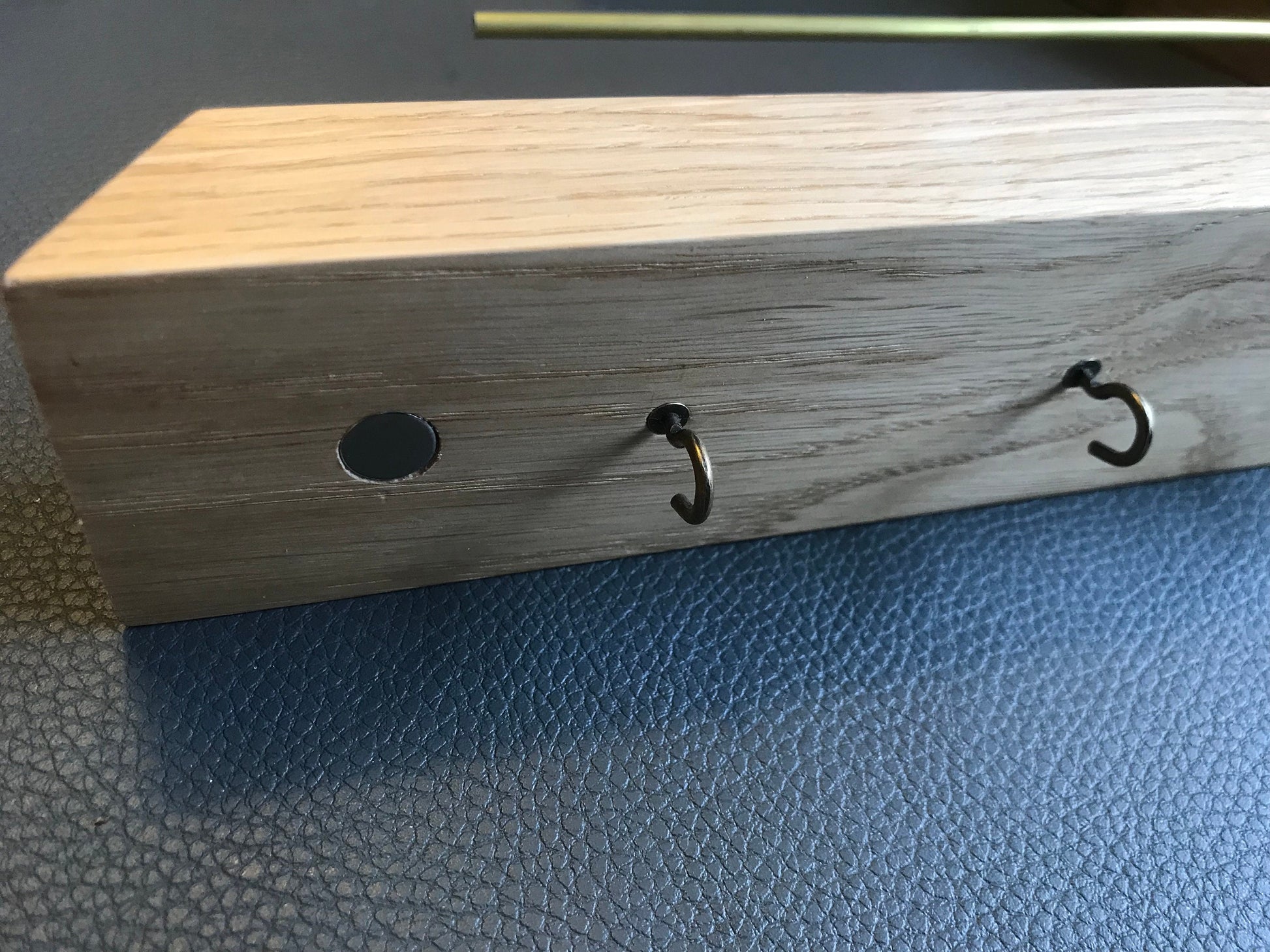 Das Schmuckregal wird in liebevoller Handarbeit angefertigt. Dabei wird das Holz zunächst individuell ausgesucht, aufgetrennt und gehobelt. Als nächstes entsteht der die Gehrung, bevor der Magnete und die Haken auf der Unterseite, sowie die Stangen und die Aufhängungen auf der Rückseite präzise eingelassen werden.