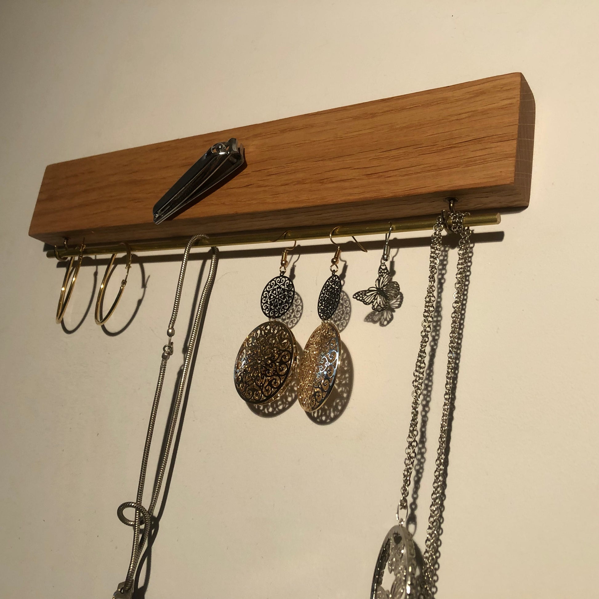 Schmuckorganizer mit Messingstange für mehr Ordnung – Schmuckständer, Ohrringhalter, Schmuckboard, Schmuckhalter