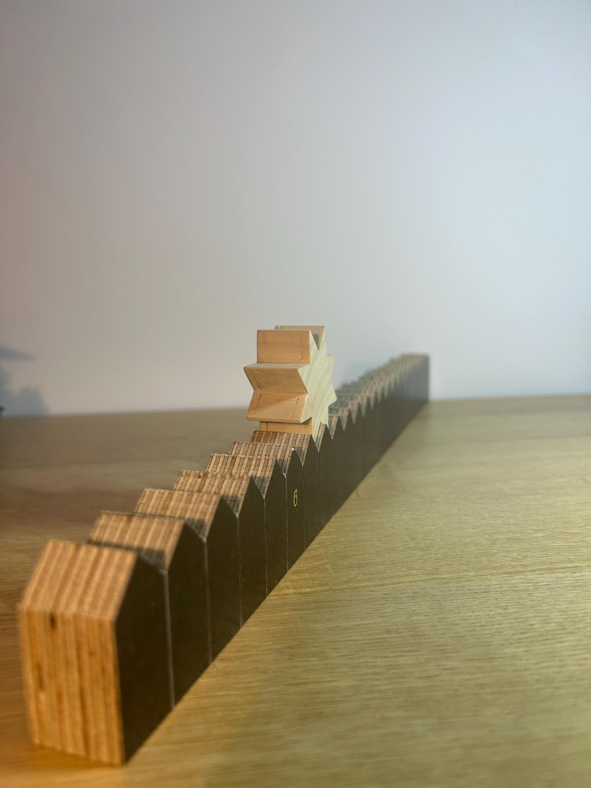 Holzauswahl: Der Kalender wird aus Siebdruckplatte (Birkenholz) und der Stern aus nachhaltigem Ahornholz hergestellt.